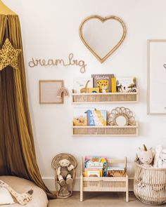 - Le choix des étagères : accrochées au mur ou bibliothèque posée au sol, assurez-vous que votre enfant ait accès à ses livres afin qu’il puisse en changer seul aussi souvent qu’il le désirera.