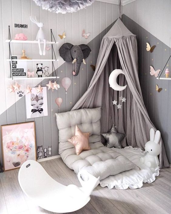- Choisir la décoration : coussins en forme de nuages, d’animaux… Tapis de sol, cadres ou encore peluches, n’hésitez pas à choisir les éléments de ce coin lecture avec votre tout-petit.