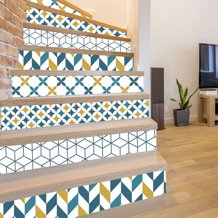 - Poser des stickers : si vos escaliers sont encore en bon état, mais que vous les trouvez fades, vous pouvez poser des stickers sur les contre-marches.