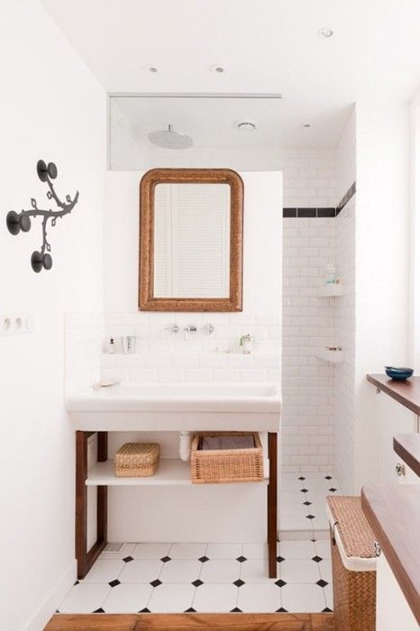 Finalement, la réalité a été toute autre… La salle de bain a été la pièce que j’ai sacrifiée au détriment d’un espace extérieur plus grand comprenant terrasse et jardin. Je ne possède ni baignoire, ni pièce lumineuse, ni espace ! Une pièce qui finalement a été réduite à un usage strictement pratique et dans laquelle je ne m’attarde pas plus que nécessaire ! Une nouvelle occasion alors de flâner sur Pinterest et de faire une sélection pour aménager et décorer ma petite salle de bain !
