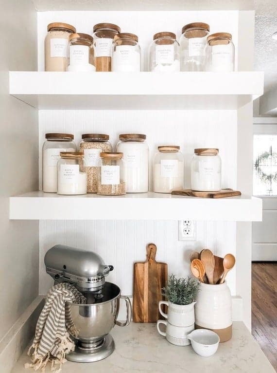 Bocaux en verre (pour les denrées alimentaires sèches) aussi esthétiques que pratiques, organisateur de placards (pour, par exemple, y ranger les poêles) et de tiroirs… Nombreuses sont les petites astuces à adopter pour profiter sereinement de votre cuisine ! Il vous sera même possible de refaire ou compléter votre décoration en choisissant les bons éléments : étagères, étagères d’angles ou encore pots à ustensiles.