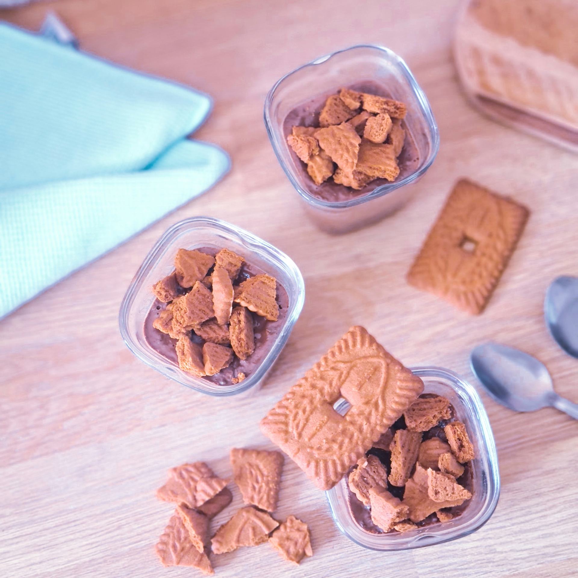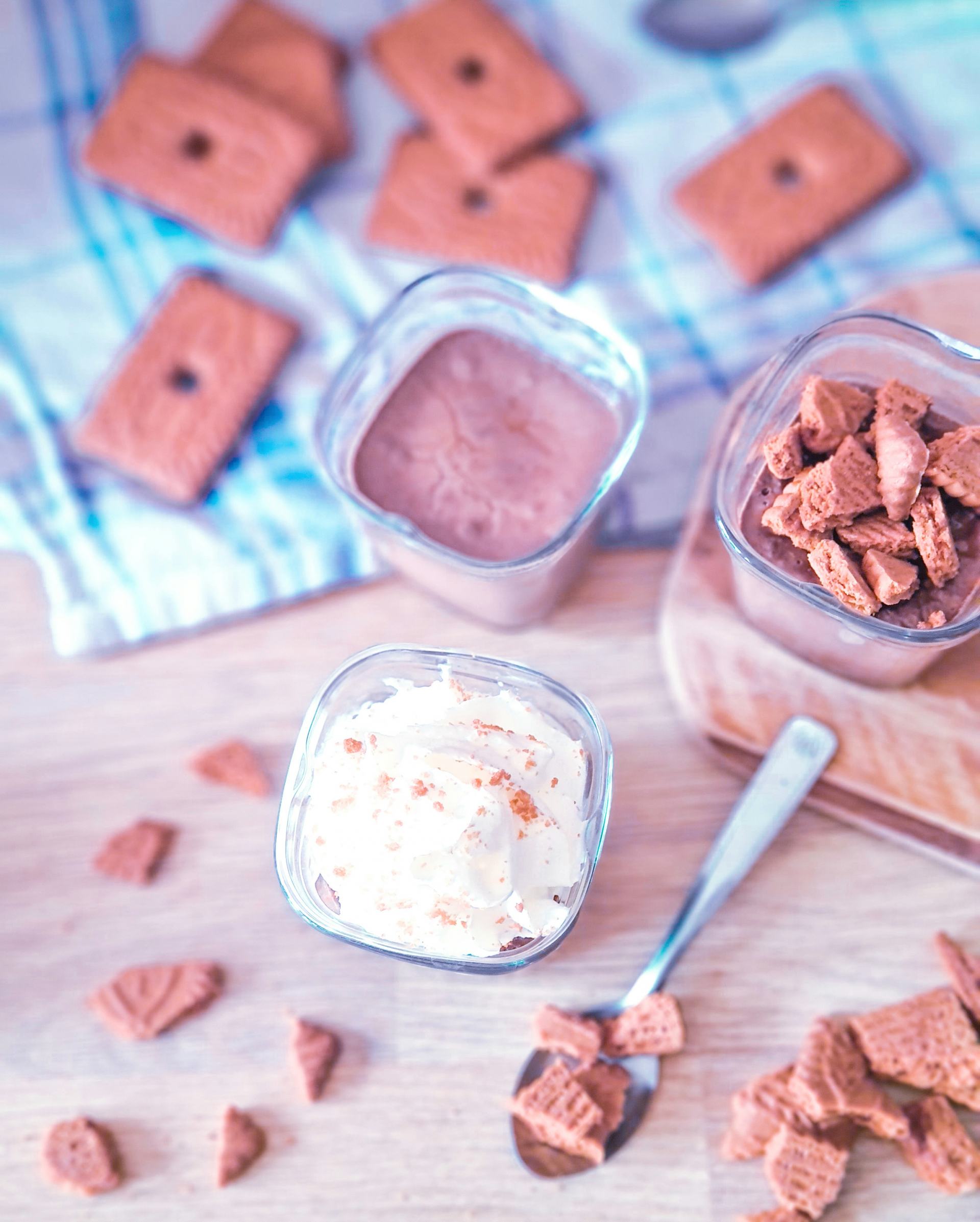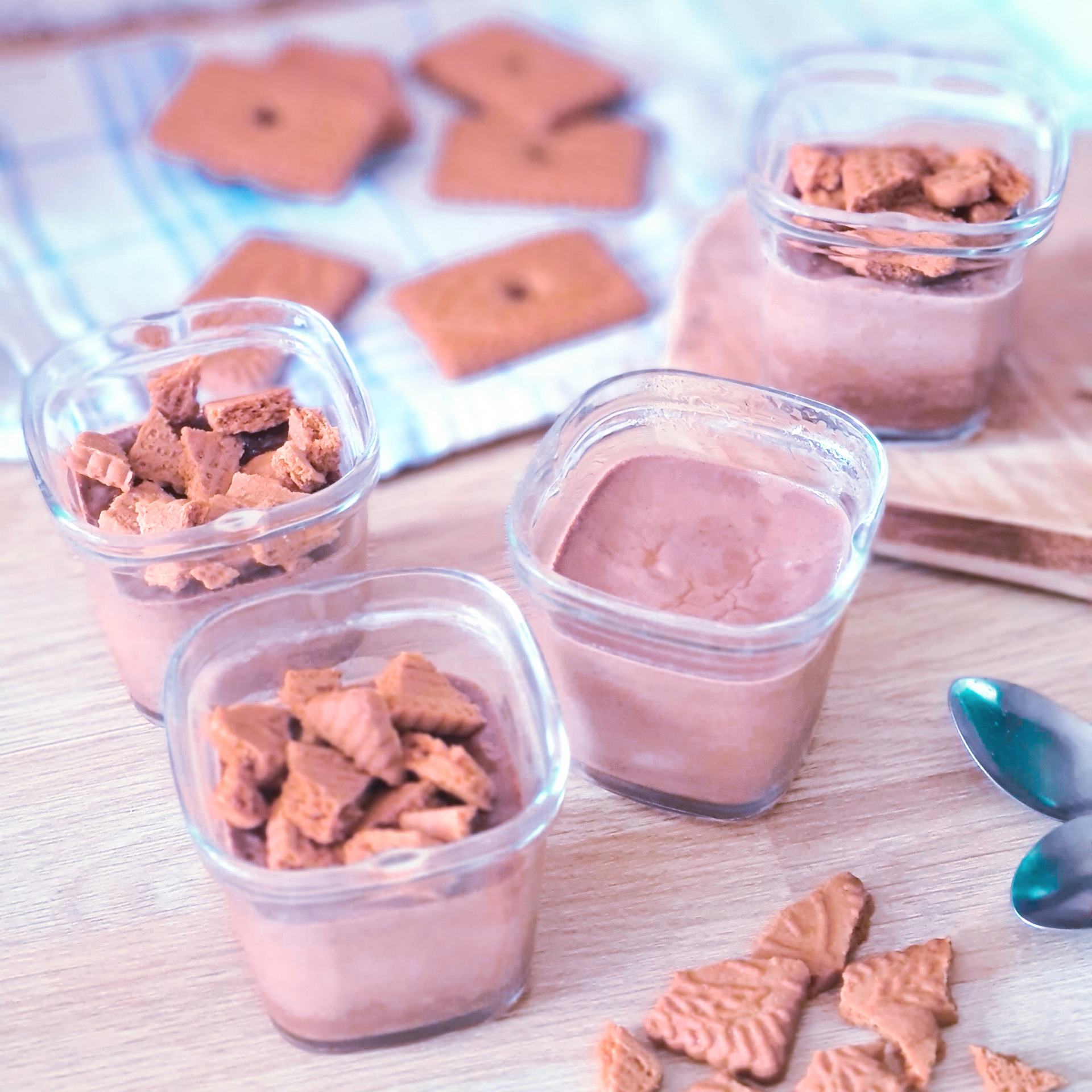 - Avant de déguster, cassez un Speculoos dans chaque pot. Les plus gourmands peuvent mettre de la chantilly avant les Speculoos
