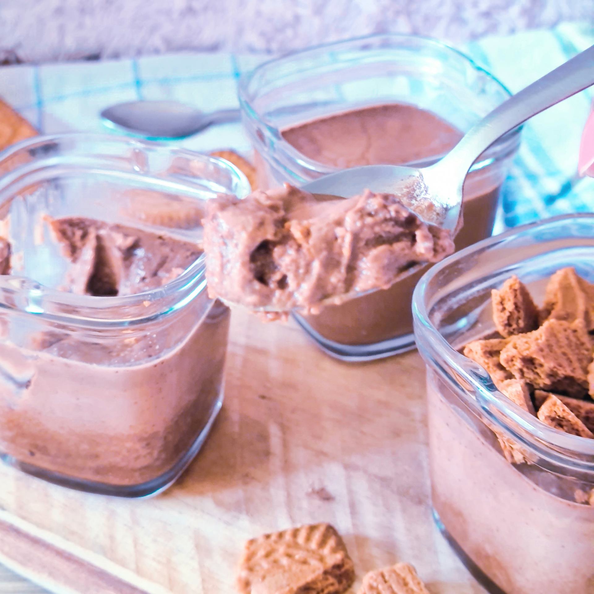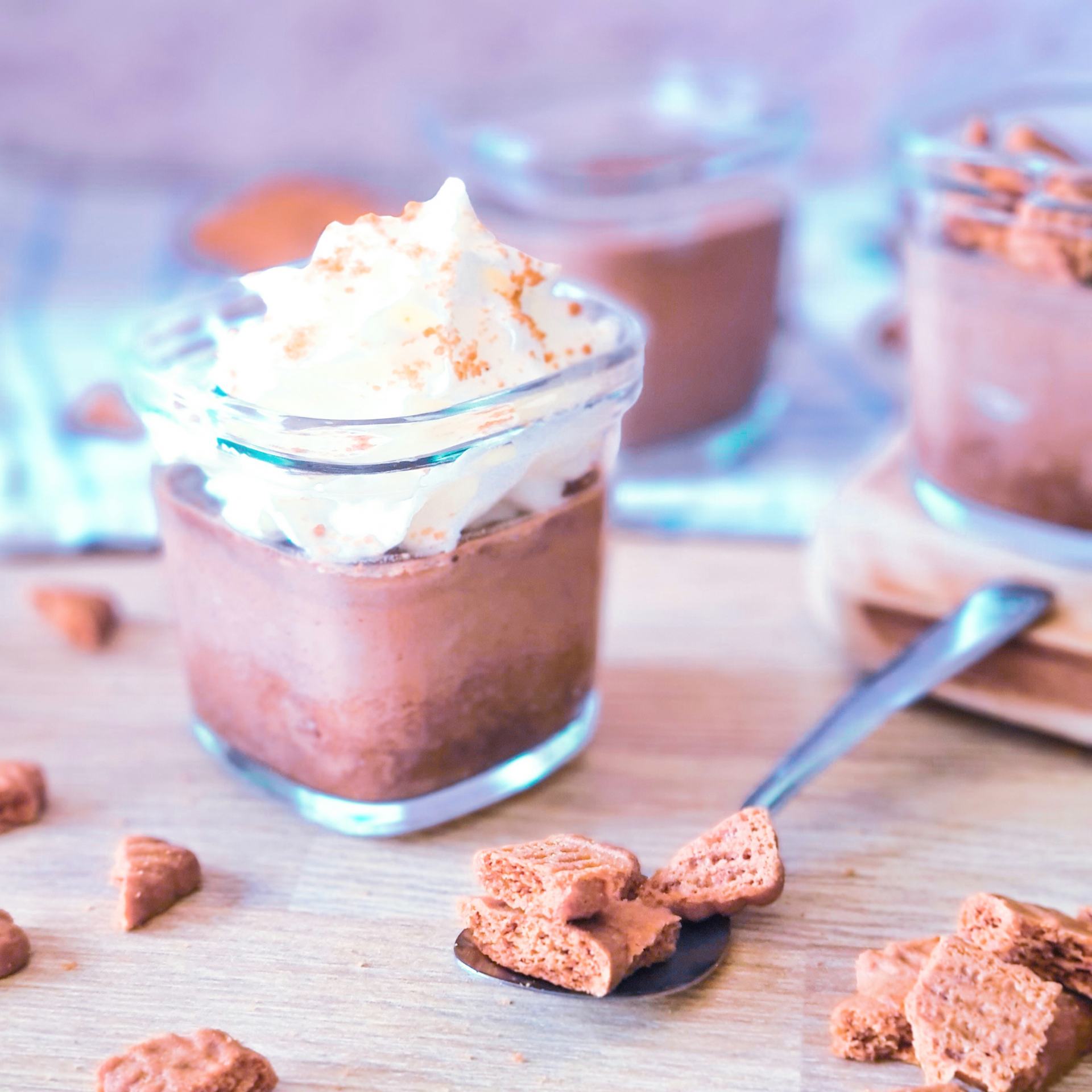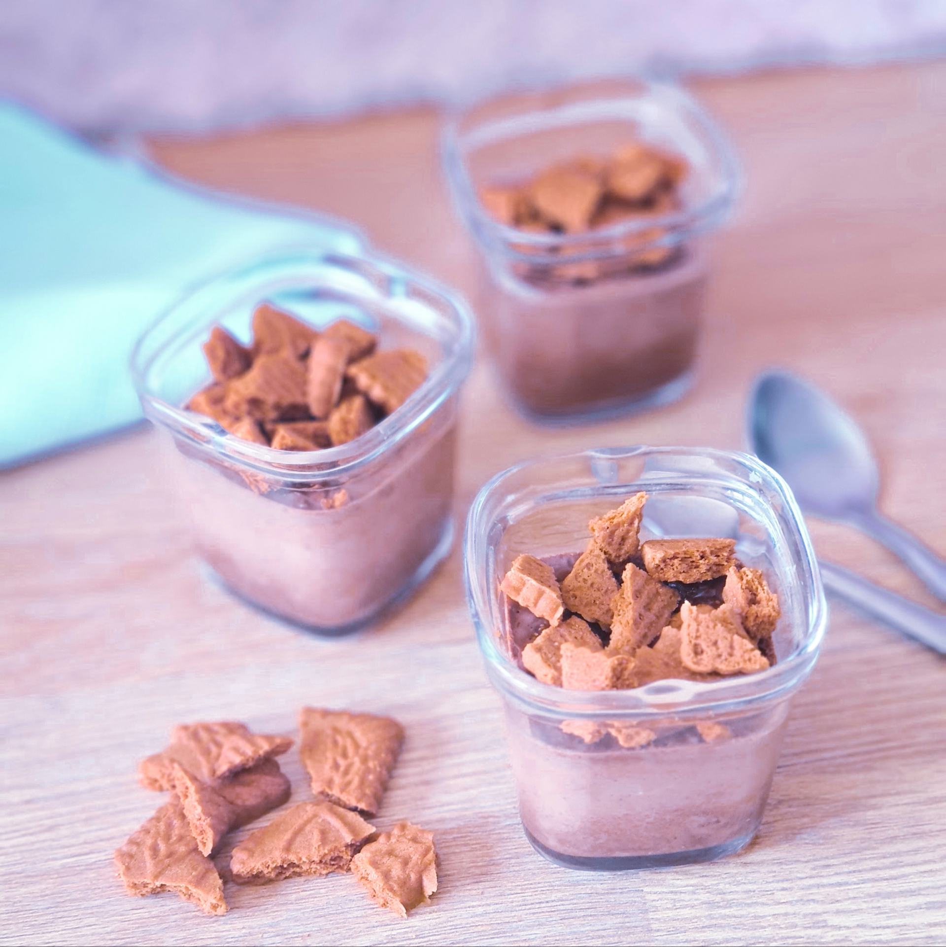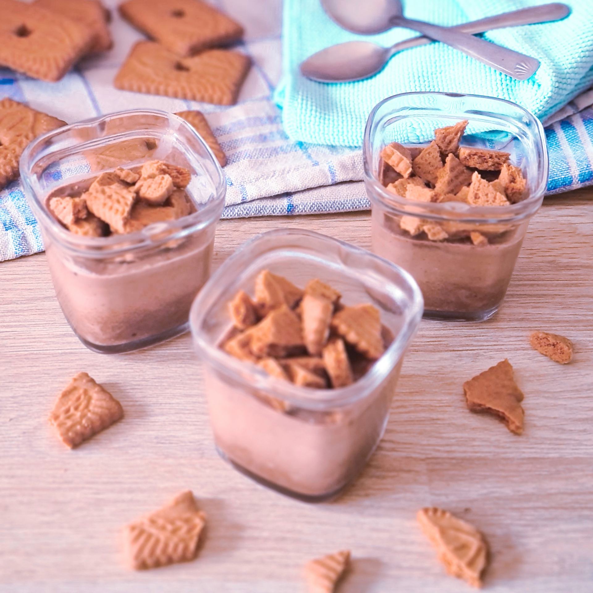 - Avant de déguster, cassez un Speculoos dans chaque pot. Les plus gourmands peuvent mettre de la chantilly avant les Speculoos